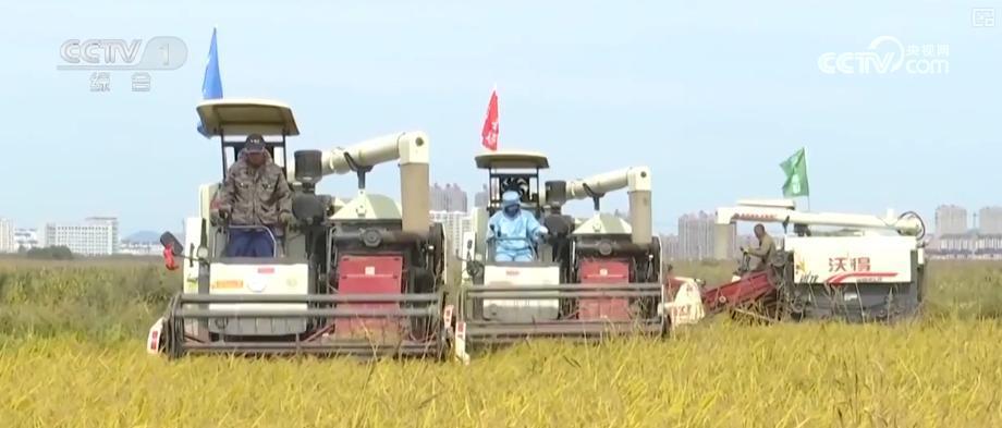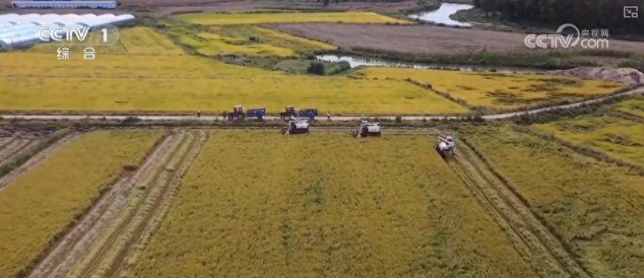 说起秋天的颜色,首先映入眼帘的就是水稻的金黄。在粮食主产区吉林省,水稻种植面积超1200万亩,农作物耕种收综合机械化率达到94.7%。在吉林省通化市辉南县三和农场,大型全喂入式收割机有序驶入金色的稻田,收割、脱粒、分离一气呵成。