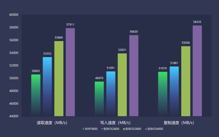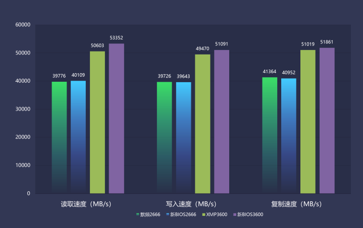 ▼对比图表如下,可以看出新BIOS下,加载XMP配置后性能再次获得了小幅度的提升,综合提升幅度大致在4%以上。