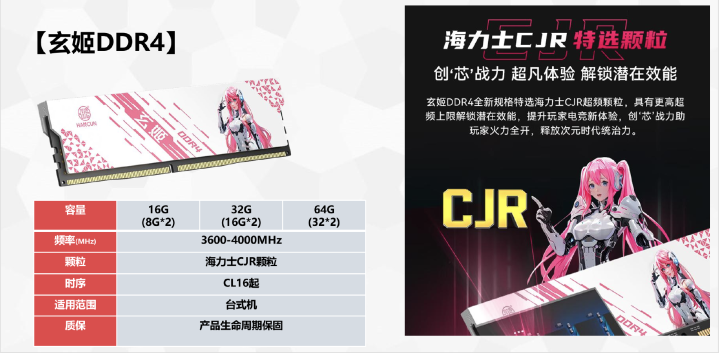 ▼玄麟系列可选3200MHz频率与3600MHz频率,出厂时序有C16、C18两种可供选择,同时在颜色上也有黑白两色可选,给了用户充分的选择空间。